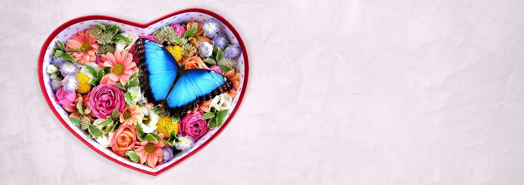 Представьте, получатель открывает коробку, а там стильный букет и живые тропические бабочки.